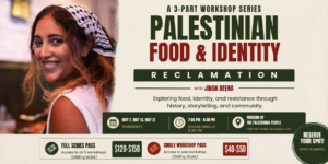 Join us for a 3-part workshop series led by Palestinian American chef and activist Jinan Deena, exploring the deep connection between Palestinian cuisine and cultural identity.